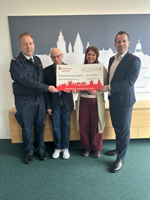 Der Mainzer Oberbürgermeister Nino Haase und die Mainzer Feuerwehr haben dem Verein Trauernde Eltern & Kinder Rhein-Main e. V. eine Spende