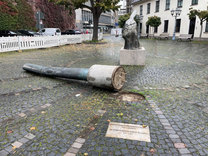In Mainz hat heute ein LKW-Fahrer die Bischofssäule auf dem Bischofsplatz umgefahren. Der 46-jährige Fahrer aus Bingen rangierte mit seinem Fahrzeug und achtete dabei nach eigenen Angaben besonders auf die Statue des Bischofs Wilhelm Emmanuel von Ketteler. Dabei hat er allerdings die danebenstehende Säule übersehen und aus der Verankerung gerissen. Die Polizei informiert jetzt die Denkmalschutzbehörde der Stadt. Die genaue Schadenshöhe ist noch unklar.